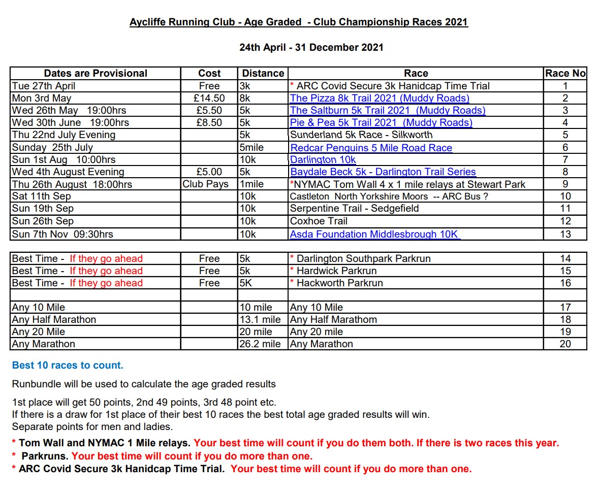ARC Age Graded Club Championship Races 2021